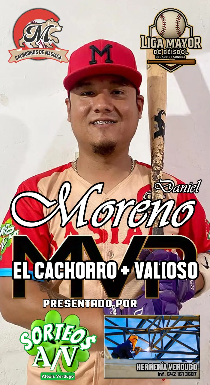 Ahora corresponde nombrar a Daniel Moreno, el MVP de Cachorros de Masiaca bateó de 4-2, negoció dos boletos, tuvo una impulsada y se estafó una almohadilla en el juego ante Huatabampo.